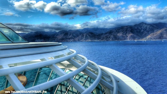 The dramatic mountainous landscape makes for a really picturesques sail in. We were sailing in when the Captain did a full 360 and actually reversed in. Even after many cruises we are still amazed at the precision that these huge vessels are able to maneuver.