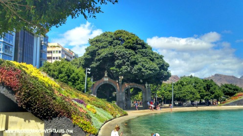 Just opposite the crisp shop we found the Plaza de Espana, the largest square in Santa Cruz. It was another oasis in the middle of the city consisting of a large paddling pool and areas with plenty of seating. There are fountains here but unfortunately they were not on during our visit, it was lovely seeing the families enjoying the water though. A selection of interesting buildings surrounded the pool with their walls covered with plants. We enjoyed our time sitting here in sunshine. This is very close to the port and walking back to the port entrance only took 5 minutes.